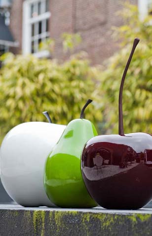 Die Objects Produktpalette besteht aus Fiberglas. Dieses Material basiert auf wertvollem Naturstein. Fiberstone besteht aus einer Mischung von Fiberglas und Schotter. Diese beiden Rohstoffe gewährleisten ein haltbares Material, das bei jeder Temperatur für den Einsatz drinnen und draußen geeignet ist. Die einzigartigen Eigenschaften dieses leichten Materials, welches praktisch das gleiche Aussehen wie Naturstein hat, macht dieses Produkt eine bessere Alternative. Ausgehend von diesem Grundaufbau wurde eine Version mit einer erstklassigen Hochglanzveredelung entwickelt. Diese Hochglanzveredelung ist im stilvollen weiß, klassischen Sand, elegantem grau oder modernen schwarz erhältlich, wie auch in den markanten und auffälligen Farben verführerisches rot, frischem lime und knallende fuchsia. Der Lack besteht aus 7 Schichten und ist UV-beständig.